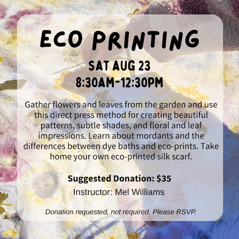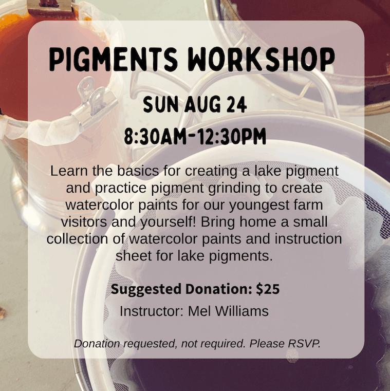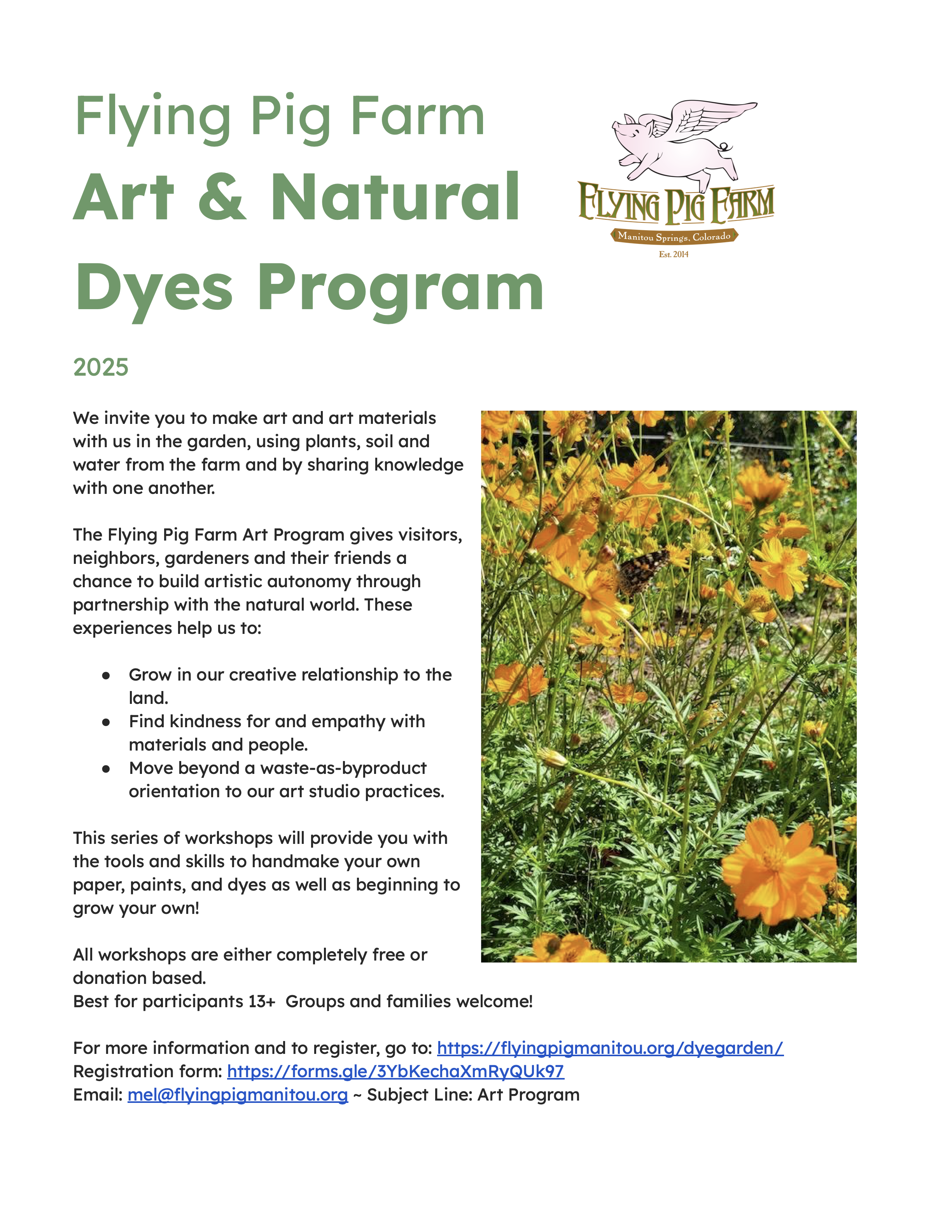 The Dye Garden is the foundation of our Art & Natural Dyes Program, where we cultivate dyes and pigments for outdoor classes, workshops, and Farm Camps. We grow black hollyhock, indigo, madder root, marigold, coreopsis, dyers chamomile, and cota along with supportive plants and pollinators. Flying Pig Farm art and dye workshops will provide you with the tools and skills to hand make your own paper, paints, and dyes.