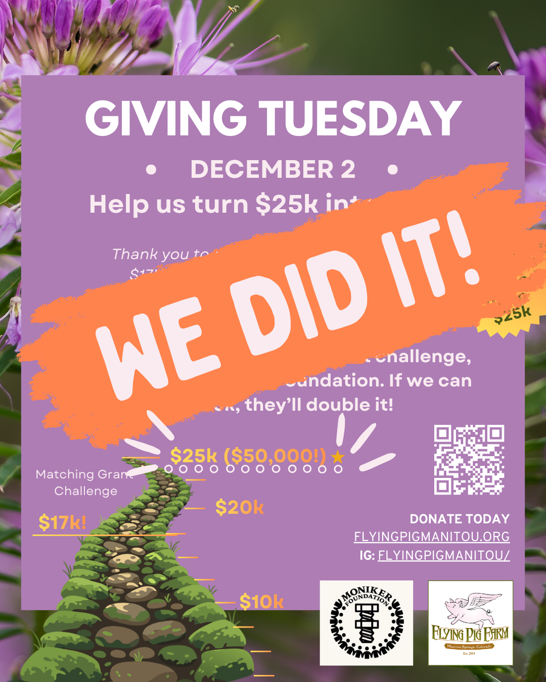 Thanks to all of our community partners, neighbors, fellow farmers and educators! We do so much important work together, and that work allows children to frolic, goats and roosters to cuddle, strawberries to sweeten, seeds to germinate, sprouts to spring, kale to crunch, pizza ovens to cobb, and greenhouses to start hoopin’.